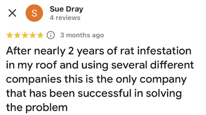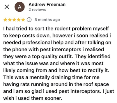 Where to start?! Firstly, Please read this whole review and please consider these guys, they are the best in the bizz!! I would like to thank Christian and his son for potentially saving me from going into a depression – I don’t know where I would be now if it wasn’t for social media, because that is how I finally found this business, who turned out to improve my quality of life over night, after 3 long years of living with rats (that no other small business has been able to resolve) and probably 3 years of sleepless nights and anxiety ☹. I am based in North Wales, right on the coast, so miles away from where the business is located.